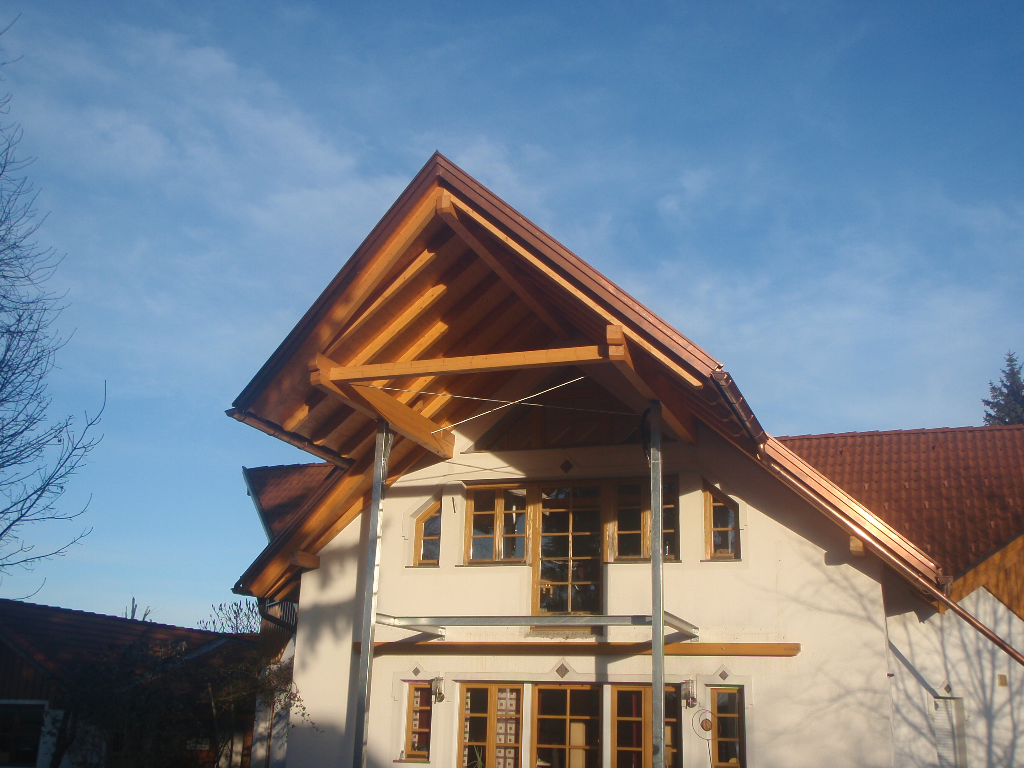 Für die Errichtung des Dachstuhls verwenden wir richtig gelagertes, getrocknetes Holz. Das Zuschneiden und der präzise Abbund der Hölzer garantieren die notwendige Passgenauigkeit. Auf Wunsch bauen wir auch Gauben in den Dachstuhl ein und passen die Dachstruktur an Ihre jeweiligen Wünsche an. Unsere Mitarbeiter sind bestens für diese Arbeiten qualifiziert und erledigen sie pünktlich innerhalb der vereinbarten Frist.